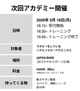 ぜひ私たちと一緒に、日本ラグビーの未来を切り開くスピードスターを目指しましょう!